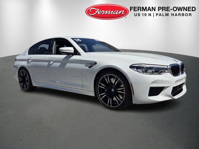NAVIGATION*, SUNROOF*, EXECUTIVE PACKAGE*, BACK UP CAMERA*, DRIVERS ASSISTANCE PLUS PACKAGE*, LOCAL TRADE, The 2018 BMW M5 Base represents the perfect balance of luxury, technology, and track-ready performance. Completely redesigned for the F90 generation, this high-performance sport sedan delivers the power and agility enthusiasts expect while maintaining the refinement and comfort that define the BMW brand. If you're looking for a vehicle that blends everyday practicality with exhilarating performance, the 2018 M5 stands in a class of its own. At the heart of the M5 is a handcrafted 4.4-liter BMW M TwinPower Turbo V8 producing an impressive 600 horsepower and 553 lb-ft of torque. Paired with a lightning-quick 8-speed M Steptronic automatic transmission, this powerhouse launches from 060 mph in just 3.2 seconds. For the first time in M5 history, BMW introduced the innovative M xDrive all-wheel-drive system, delivering exceptional traction and control while still allowing drivers to switch to a rear-wheel-drive mode for pure performance driving. Performance is only part of the story. The M5s adaptive M suspension, active M differential, and powerful M compound brakes provide razor-sharp handling and confidence at any speed. Multiple drive modes allow you to tailor the vehicles responsiveness, suspension stiffness, steering feel, and drivetrain characteristics to match your driving stylewhether commuting comfortably or pushing the car on a spirited drive. Inside, the cabin delivers premium craftsmanship with Merino leather upholstery, aluminum trim, heated sport seats, and a driver-focused cockpit. Advanced technology includes BMWs intuitive iDrive infotainment system, navigation, Apple CarPlay compatibility, a premium sound system, and a fully digital instrument cluster that puts performance data directly in your line of sight. Safety and driver assistance features add peace of mind with options such as blind-spot monitoring, lane departure warning, adaptive cruise control, and a surround-view camera system. The 2018 BMW M5 Base is more than just a luxury sedanits a precision performance machine designed for drivers who demand excitement without sacrificing comfort or practicality. With four-door versatility, cutting-edge technology, and supercar-level acceleration, the M5 remains one of the most compelling high-performance sedans ever produced., HARMAN KARDON SOUND SYSTEM, 4D Sedan, 4.4L V8 Turbocharged DOHC 32V LEV3-ULEV125 600hp, 8-Speed Automatic, AWD, Alpine White, Black Leather, 16 Speakers, 4-Wheel Disc Brakes, 4-Zone Automatic Climate Control, ABS brakes, Active Driving Assistant Plus, Active Park Distance Control, Adaptive suspension, Advanced Real-Time Traffic Information, AM/FM radio: SiriusXM, Apple CarPlay Compatibility, Auto High-beam Headlights, Automatic temperature control, Brake assist, Delay-off headlights, Driving Assistance Plus Package, Dual front impact airbags, Dual front side impact airbags, Electronic Stability Control, Emergency communication system: BMW Assist eCall, Enhanced USB & Bluetooth®, Executive Package, Exterior Parking Camera Rear, Four wheel independent suspension, Front & Rear Heated Seats, Front anti-roll bar, Front Bucket Seats, Front dual zone A/C, Front Massaging Seats, Front Ventilated Seats, Fully automatic headlights, harman/kardon Surround Sound System, Heads-Up Display, Heated Front Seats, In-Dash CD Player, Leather Shift Knob, Leather steering wheel, Low tire pressure warning, Memory seat, Moonroof, Navigation System, Occupant sensing airbag, Overhead airbag, Panic alarm, Parking Assistant Plus, Power Rear Sunshade, Radio: AM/FM Audio System, Rain sensing wipers, Rear anti-roll bar, Rear-View Camera, Remote keyless entry, Security system, SiriusXM Satellite Radio w/1 Year All Access, Soft-Close Automatic Doors, Speed control, Speed-sensing steering, Speed-Sensitive Wipers, Spoiler, Steering wheel memory, Steering wheel mounted audio controls, Surround View w/3D View, Tachometer,