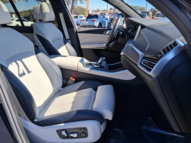 NAVIGATION*, PANORAMIC SUNROOF*, EXECUTIVE PACKAGE*, BACK UP CAMERA*, HEATED SEATS*, DRIVERS ASSISTANCE PLUS PACKAGE*, REMOTE ENGINE START*, HARMAN KARDON PREMIUM SOUND SYSTEM, 22 ALLOY WHEELS, M-SPORT BRAKES WITH RED CALIPERS, X5 M50i, 4D Sport Utility, 4.4L V8 DOHC 32V Twin Turbocharged, 8-Speed Automatic Sport, AWD, Carbon Black Metallic, Ivory White/Night Blue Ivory/Blue Ext. Merino Lthr, 12 Speakers, 4-Wheel Disc Brakes, ABS brakes, Active Driving Assistant Pro, Active Park Distance Control, Adaptive suspension, AM/FM radio: SiriusXM with 360L, Apple CarPlay & Android Auto Compatibility, Apple CarPlay Compatibility, Auto High-beam Headlights, Automatic temperature control, Connected Package Pro, Delay-off headlights, Drive Recorder, Driving Assistance Professional Package, Dual front impact airbags, Dual front side impact airbags, Emergency communication system: BMW Assist eCall, Executive Package, Extended Traffic Jam Assistant, Exterior Parking Camera Rear, Four wheel independent suspension, Front & Rear Heated Seats, Front anti-roll bar, Front Bucket Seats, Front dual zone A/C, Front fog lights, Front Ventilated Seats, Fully automatic headlights, Garage door transmitter, Gesture Control, Glass Controls, harman/kardon Surround Sound System, harman/kardon® Speakers, Head-Up Display, Icon Adaptive LED Headlights w/Laserlight, Illuminated entry, Increased Top Speed Limiter, Knee airbag, Leather Shift Knob, Leather steering wheel, Low tire pressure warning, M Sport Brakes w/Red Calipers, Memory seat, Navigation System, Occupant sensing airbag, Overhead airbag, Panic alarm, Panoramic Sky Lounge LED Roof, Parking Assistance Package, Parking Assistant Plus, Power adjustable front head restraints, Rain sensing wipers, Rear air conditioning, Rear anti-roll bar, Rear Manual Side Window Shades, Rear window wiper, Security system, Speed control, Speed-sensing steering, Speed-Sensitive Wipers, Surround View w/3D View, Tachometer, Telescoping steering wheel, Tilt steering wheel, Traction control, Variably intermittent wipers, Wheels: 22 M Double-Spoke Black (Style 742M). Clean CARFAX. CARFAX One-Owner. *SEE DEALER FOR DETAILS.